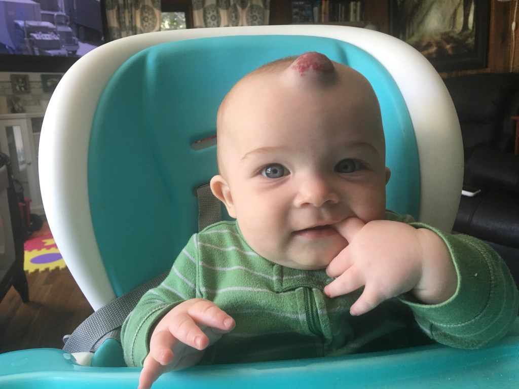we’ll never forget the elation that we felt in our hospital room after frankie was born. he was our first child and although we knew we had a lot of work ahead of us, we had just brought this new human being into existence! after getting frankie home and trying to settle into our new routines, a curious little spot showed up on his forehead. this was about 2 weeks after he was born and we just thought he had infant acne or a bug bite. then the spot got bigger. and bigger. and bigger. by the time frankie was 3 months old this spot had become what we had dubbed his “unicorn horn”.